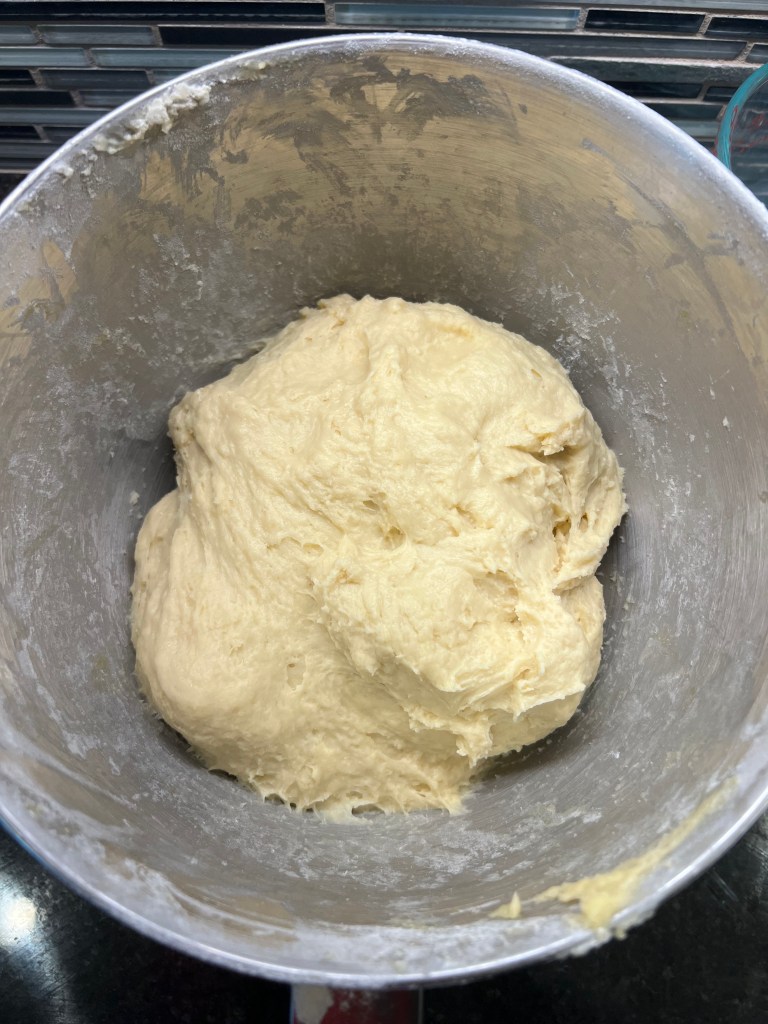 - Mix Dough: In a large mixing bowl, combine flour, remaining sugar, and salt. Make a well in the center and add yeast mixture, melted butter, and eggs. Mix until a dough forms.